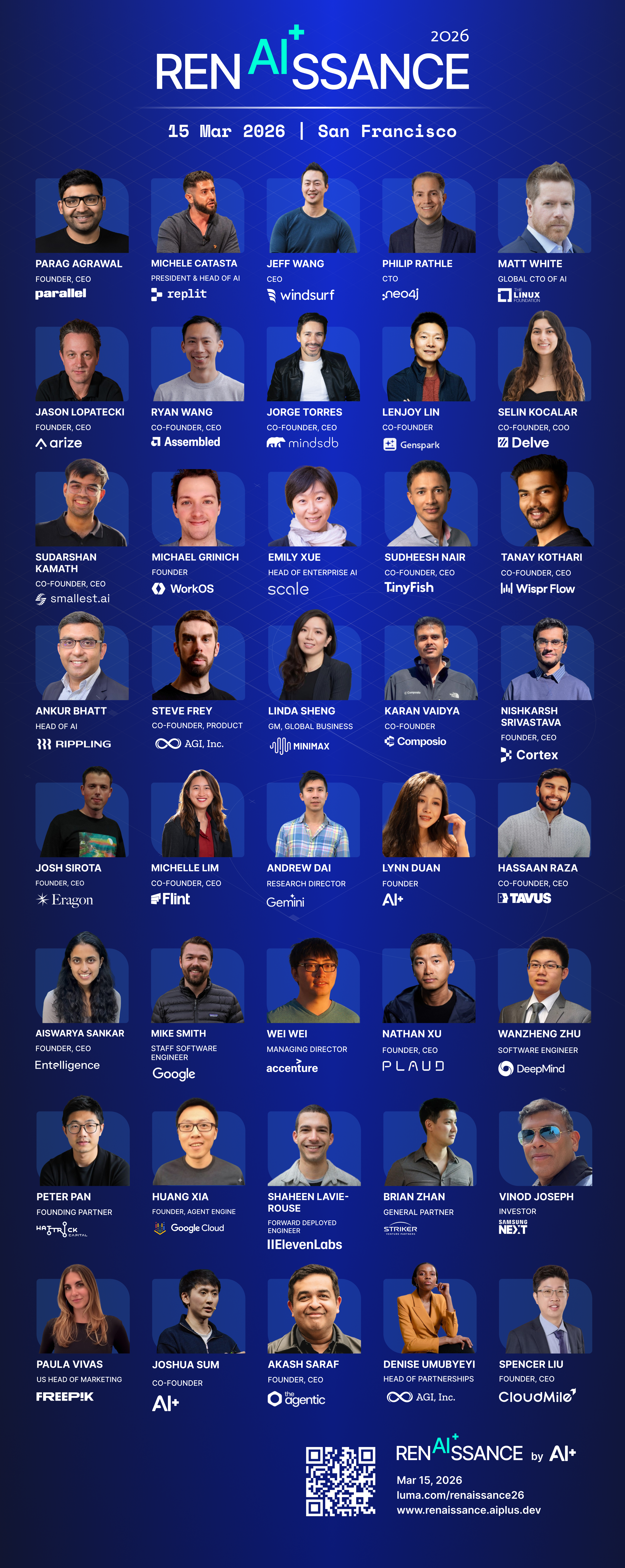 [AI+](https://aiplus.dev) has hosted **200+ events** since 2023 and built a community of **70,000+ founders and builders**. Our recent AI+ Multimodal & Agent Summit featured 30+ unicorn founders from Windsurf, Eve, Genspark, Luma AI, Tavus, Browserbase, and more.